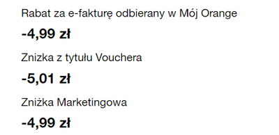 Są 2 zniżki za e-fakture i za zgody marketingowe.