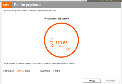 Po "migracji" test prędkości na Fun Boxie: 692 Mbit/s