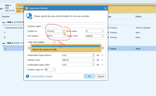 @Rafał32 witam musiał byś użyć tego programu partitionwizard i przywrócić ustawienia dysku na te parametry powinien być widoczny dla komputera a program partitionwizard na pc bedzie go widział i pomoże ci przywrócić parametry