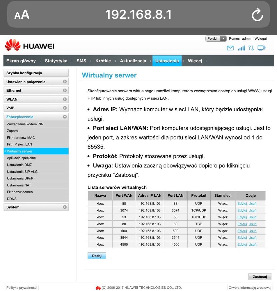 Posiadam internet mobilny włączyłem usługę VPN wiec mam otwarte porty ustawiłem VPN jako domysły otworzyłem porty na routerze jbc router huawei b315. Na konsoli ustawiłem IP ręcznie i mam NAT otwarty a nadal nie mogę połączyć się ze znajomymi online ani ogólnie online Oczywiście mam gold. Dziś w forza horizon 4 była taka sytuacja ze udało się połączyć z kolega w taki sposób ze mnie widział, a ja jego nadal nie widziałem. Może źle porty otworzyłem? Proszę o pomoc.