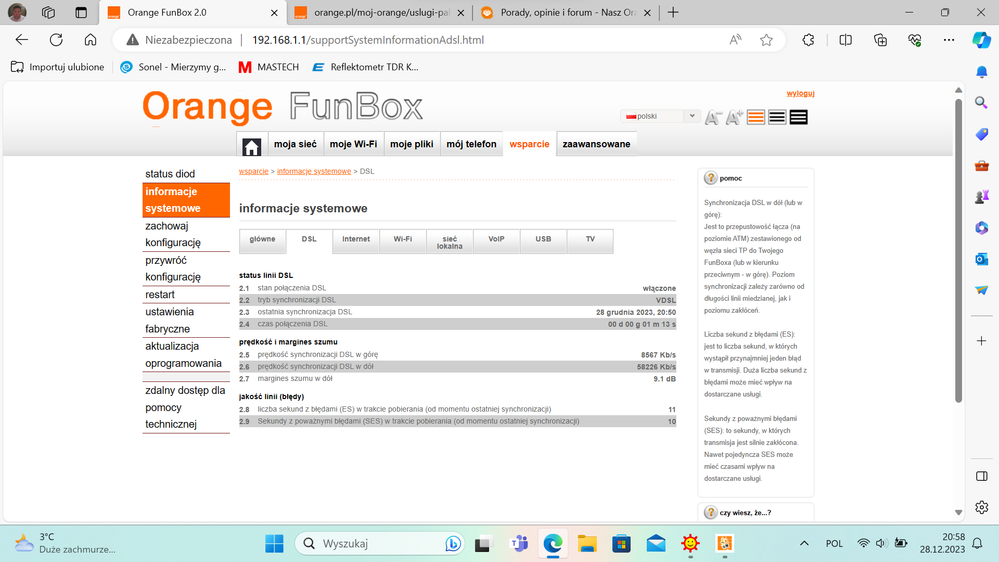 Duża liczba błędów ESów i SESów może być spowodowane problemem z linią telefoniczną. @Anonim czy Funbox traci synchronizacje gdy pojawiają się nowe błędy?