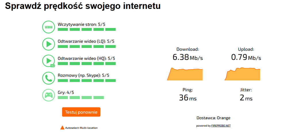Wybrałem jakiś TelPol (nie mam pojęcia co to jest) z Chorzowa i wynik testu był znacznie lepszy od domyślnych Orange Polska z Katowic.