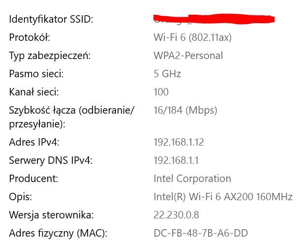 Rozdzieliłem pasma 2,4Ghz i 5GHz przed chwilą i niewiele to dało. Nie odznaczam wifi 6, bo po odznaczeniu laptop nawet w pokoju z routerem zwalnia do 90-100Mb/s, przy włączonym Wifi 6 chyba łączy się przez Wifi 6 i w pokoju z routerem na rozdzielonych pasmach ma  wysokie wartosci >500Mb/s, ale w pokoju oddalonym o 6 m od routera wartosci bez zmian, nawet tylko kilkanascie MB/s