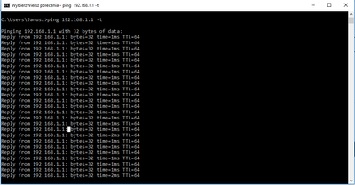 Ping do routera jest na poziomie 1 ms czasem 2 ms a sporadycznie co kilkanaście wyswietleń skok. Screana pozwole sobie nie zamieszczać zwzg na niską jakość powstałych obrazków.