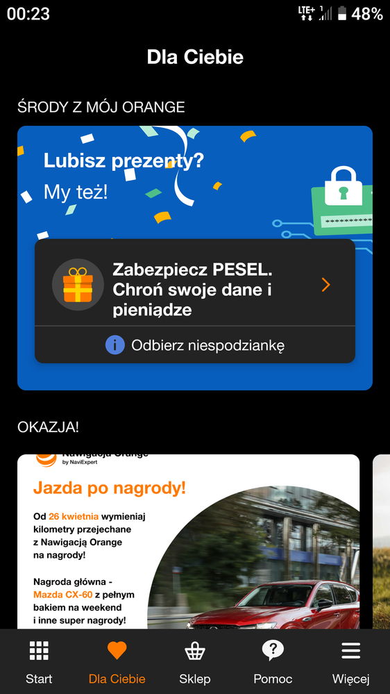 Licznik odliczający czas na wykorzystanie prezentu w ramach Środy z Orange (abonament) ma przesunięcie czasowe o dwie godziny. Może sugerować, że odbiór nagrody jest możliwy po północy z wtorku na środę, tylko że prezent znika zaraz po 0:01