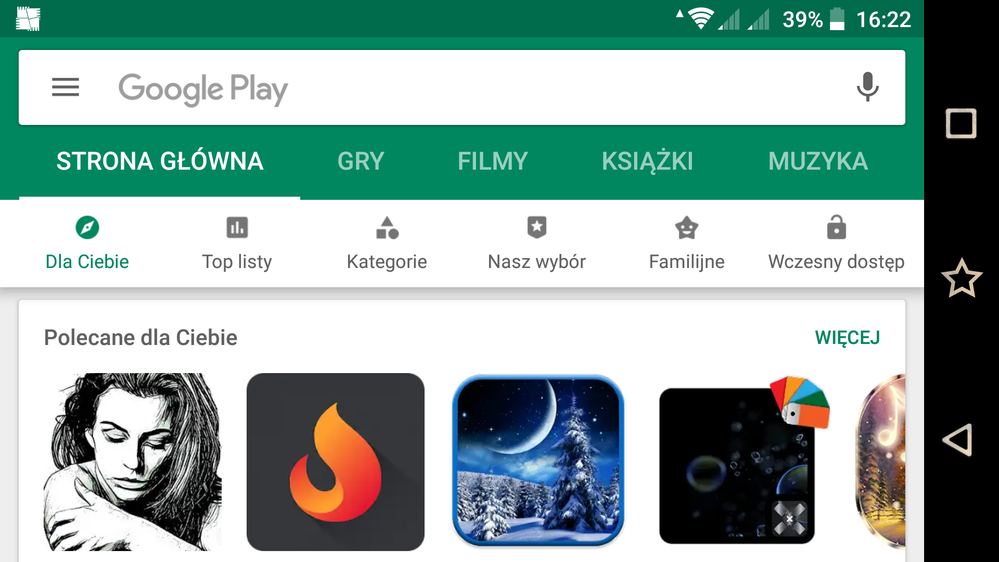 Mówisz, masz @Ela12 zrzut ekranu w poziomie, pionowo trzeba przesunąć w lewo kategorie pod wykazem zakładek na stronie głównej aplikacji w telefonie .