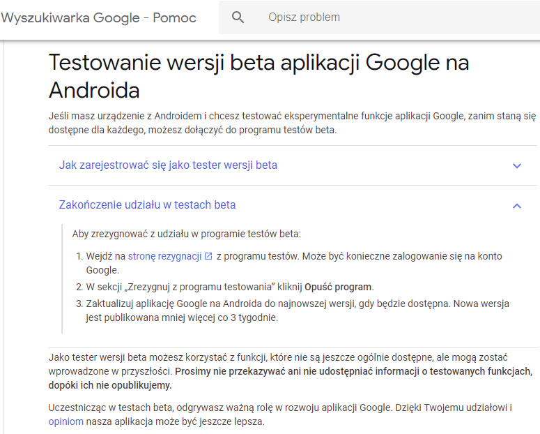 A może w ustawieniach Sklepu (lub konta Google) trzeba coś przestawić, aby nie otrzymywać wersji 'beta'?