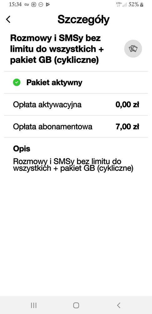 A mój aktualny pakiet za ktory place 25 zl kosztuje 7 zl za 30 dni