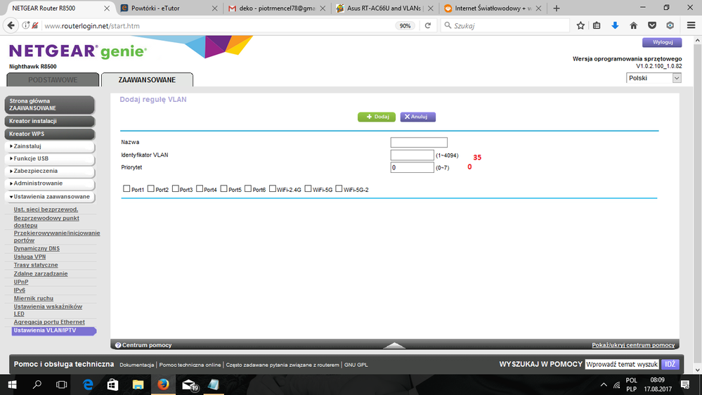 @piterson Zauważyłem, że masz dekodery TV. Tu mogą się zacząć schody. Musisz poczytać https://trzepak.pl/viewtopic.php?f=20&t=51177 i do portów, do których są podłączone dekodery trzeba zastosować inne reguły.(VLAN 838 i 839). Nie wiem czy ten router to umożliwi.