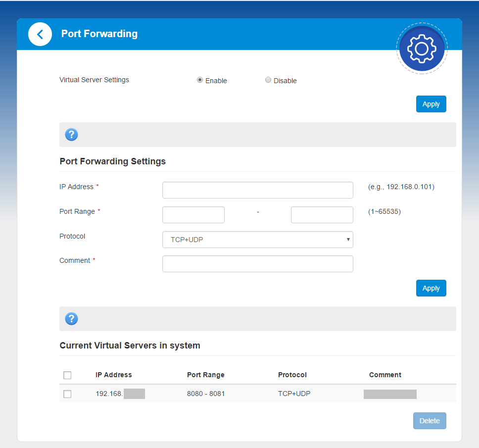 Oczywiście interfejs routera jest na tyle ubogi, że nie da się wskazać: Source PORT na Destination PORT - tylko jest 1:1 wpisany przedział, przekierowywany na wybrany IP.