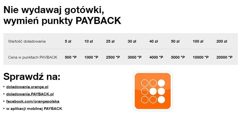Ale ja wyszukiwałem "orange doładowanie payback", bo nie interesuje mnie jakieś tam zbieranie punktów, tylko konkretna rzecz, doładowanie punktami. I pierwszy wynik wyszukiwania w Google daje taki wynik: