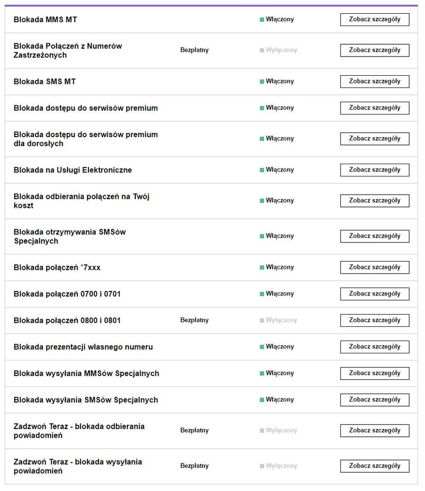 - w serwisie WWW: Pakiety i Ustawienia > Ustawienia > Blokady