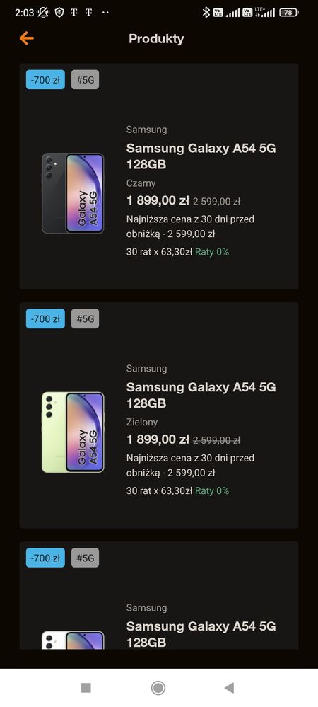 Okazja miesiąca FLEX - obniżona cena 700 zł na telefon Samsung Galaxy A54 5G 128 GB. Cena po obniżce: 1 899 zł: