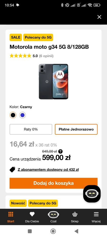 3) Motorola moto g85 5G 12/256GB taniej o 216 zł. Nowa cena to 1299,00 zł ( 36 rat po 36,08 zł) https://www.orange.pl/esklep/smartfony/motorola/motorola-moto-g85-5g-12-256gb