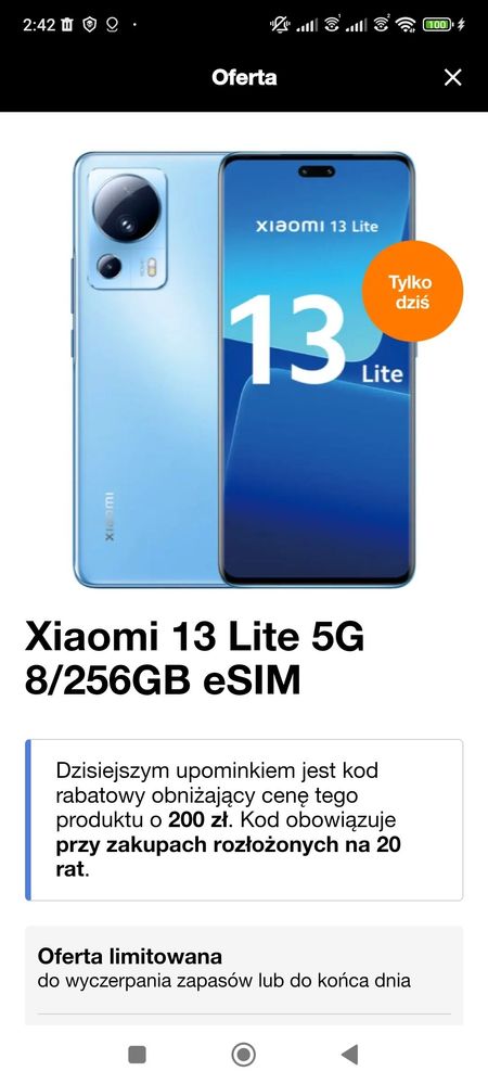 Dla zainteresowanych kupnem tego modelu smartfona przesyłam recenzje na temat tego modelu Recenzja smartfona Xiaomi 13 Lite. Mocna średnia półka! https://www.orange.pl/poradnik/smartfony-i-inne-urzadzenia/recenzja-smartfona-xiaomi-13-lite-mocna-s...