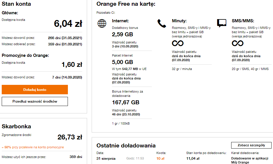 Dzisiaj o 23:59 skonczy sie waznosc przegrodki bonusowej na promocyjne gigabajty. Doladuj konto przez internet aby przedluzyc waznosc srodkow i otrzymac bonus 5GB! Zapraszamy na www.doladowania.orange.pl