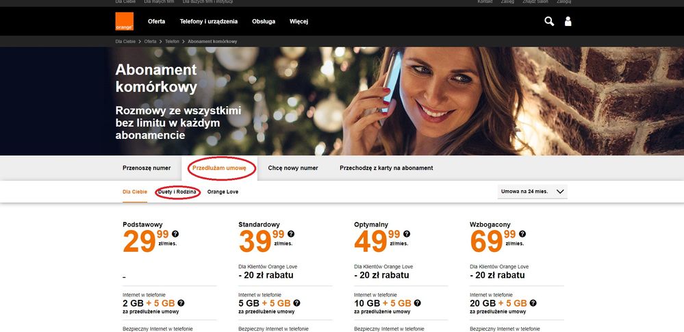 W telefonie na abonament w większości przypadków możesz w każdej przejść na ofertę Orange Love. Więcej o niej możesz poczytać pod adresem https://www.orange.pl/love