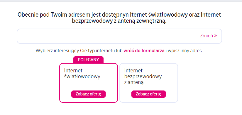 Aktualizacja: Orange jednak już też odblokowało możliwość zamówienia. Problem tylko w tym, że nie mogę zamówić samego internetu przez stronę, bo z automatu daje mi pakiet cały z TV, a jak wybieram sam internet, to wyskakuje błąd. Pewnie muszą to załatwiać na infolinii, albo przez doradcę, bo obecnie mam już Internet + Telefon w orange.