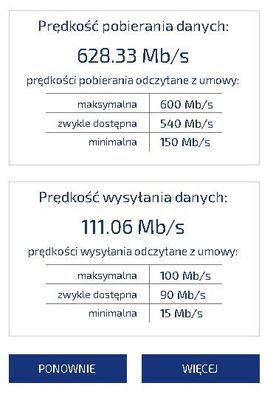 na paśmie 5Ghz. Na laptopie na wifi tplink ac600 też tyle wychodzi. Próbowałem innych telefonów i laptopów i więcej nie chce być z tego funboxa6 Nawet użyłem wifi tenda ac1200 taty i na niej wyszło nawet mniej bo 220/130. Na kablu wychodzi ponad 600/100.