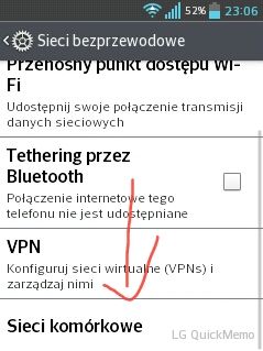 2. Przewijamy na dół i wybieramy Sieci komórkowe: