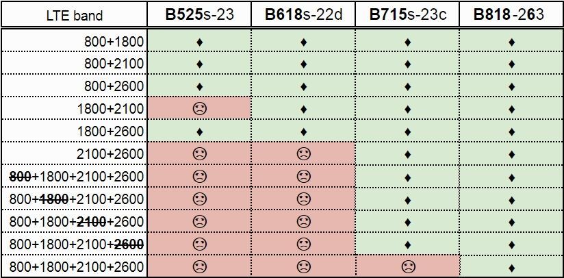 Ale ten router nie wspiera agregacji tych trzech pasm (B618)